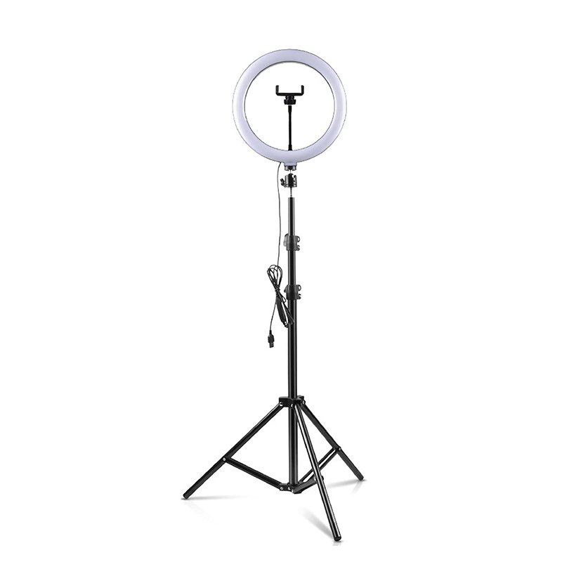 10 Inch Ring Light with 55CM Folding Tripod Selfie Stick Black