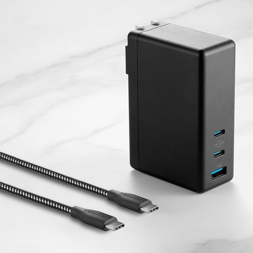 Charge wide range of devices securely and quickly with this Insignia 112W USB-C wall charger. With two USB-C and one USB-A ports, this PPS supportive charger powers up devices with advanced charging technology. Includes 6.6 feet long cable to offer convenient portability during travel.