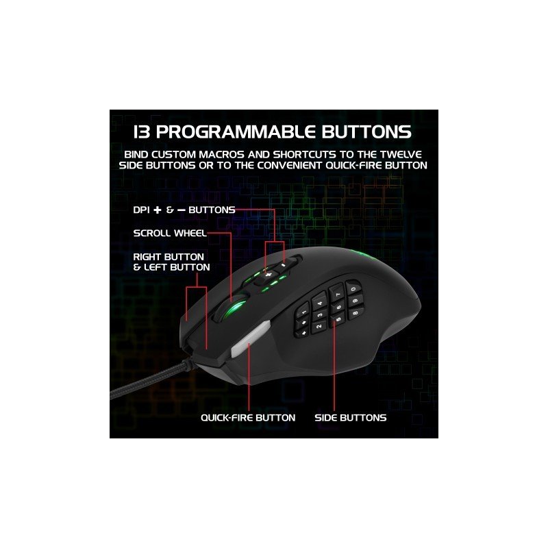ENHANCE Theorem 2 MMO Gaming Mouse w/ 13 Programmable Side Buttons RGB LED – NEW in unopened box.