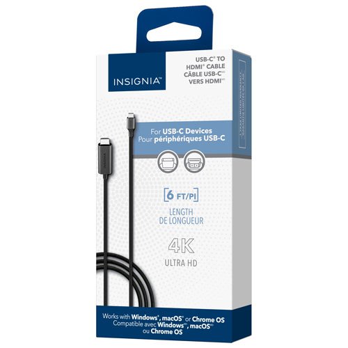 Create a secure and reliable connection from your device to your TV or monitor with this Insignia USB-C to HDMI cable. It makes it incredibly simple to extend or mirror your device’s display and offers a generous 1.8-metre length so you have flexible placement options as you set up your system.