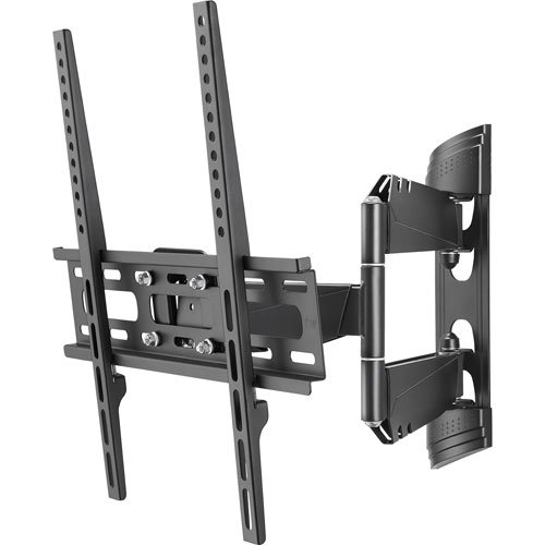 Keep floor space free and sleekly display your flat panel TV with this Insignia full motion TV wall mount. It features 3 arms and supports free angle tilting. The VESA compliant wall mount also offers an integrated cable management. It holds most TVs between 33″ and 46″.