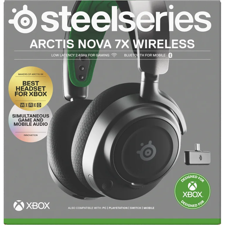 - SteelSeries Arctis Nova 7X Wireless Multi-Platform Gaming Headset — Neodymium Magnetic Drivers — 2.4GHz + Mixable Bluetooth — 38Hr USB-C Battery — AI Mic — Xbox Series X|S, PC, PS5, Switch, VR, Mobile