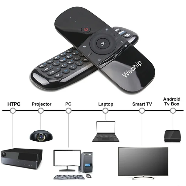WeChip W1 Universal TV Remote Air Mouse, Wireless Keyboard Fly Mouse 2.4GHz Connection Air Remote Keyboard Mouse for Android TV Box/PC/Smart TV/Projector/HTPC/All-in-one PC/TV (w1)